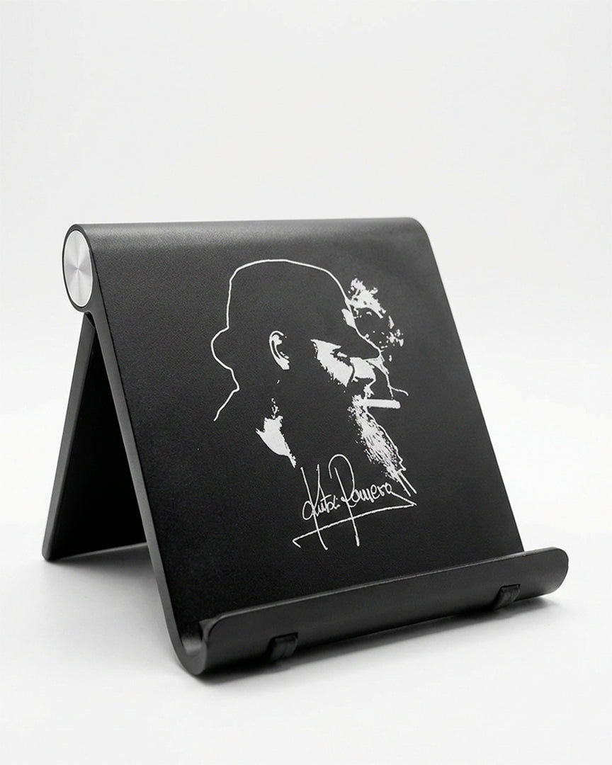 Soporte de escritorio compacto y estable, fabricado en polímero resistente de alta calidad.